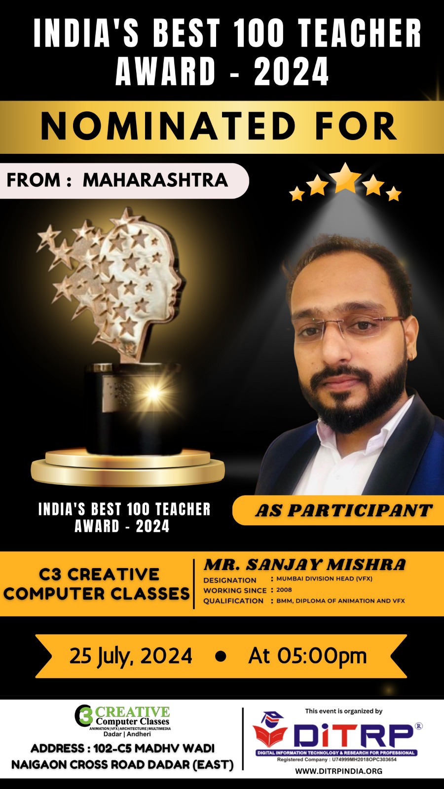 " A Legacy of Excellence , A Future of Possibilities C3 Creative Computer Classes has established itself as a leader , driving progress and positive impact. A hub for creative thinking , collaboration , and problem-solving , C3 Creative Computer clasess is preparing the next generation of leaders , innovators, and change-makers." " We stand out as a deserving winner." #vfx#3Danimation#graphicdesigning#creativity#gaming