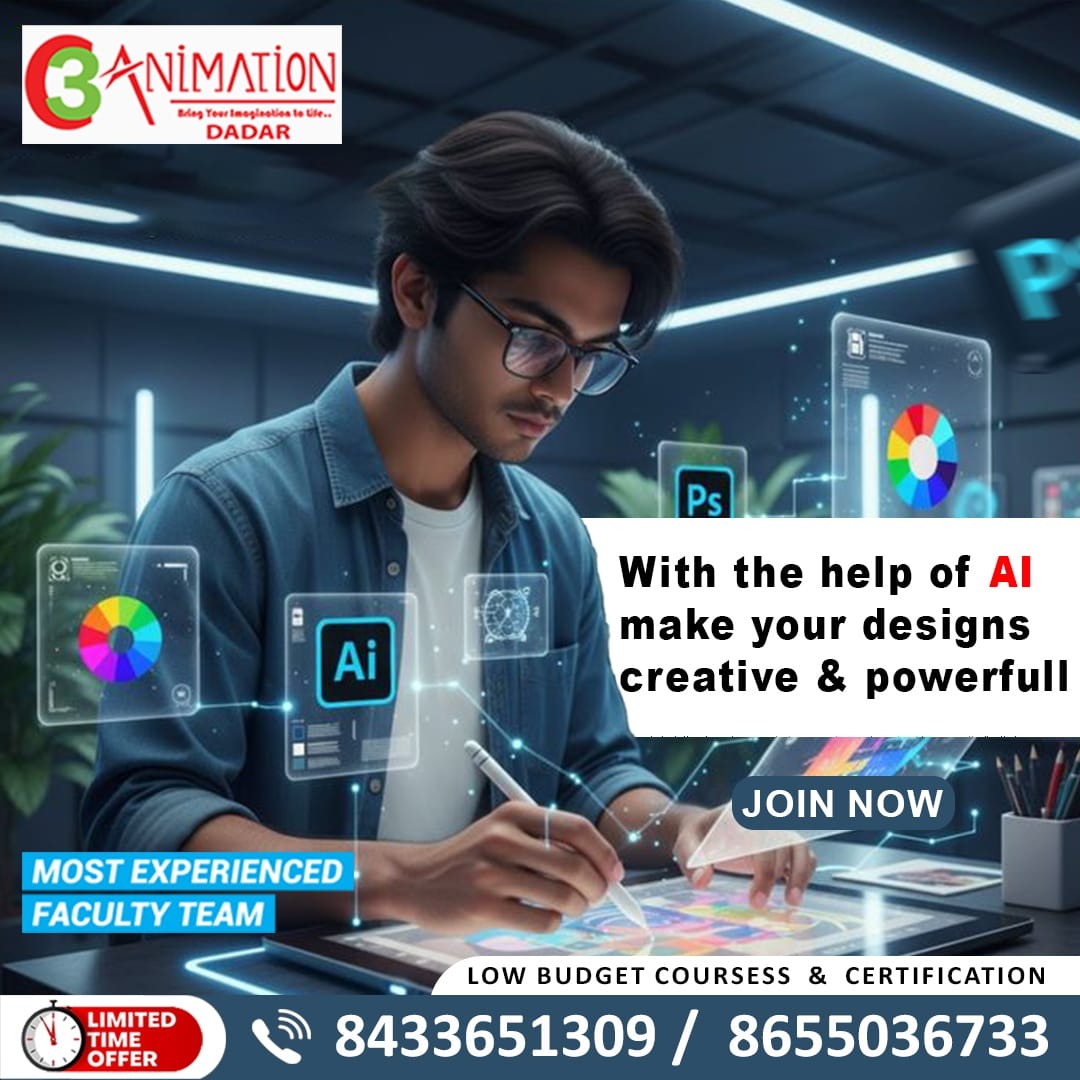 Upgrade your creative career with the *AI Course at C3 Animation Classes, Dadar. This industry-focused program is designed to help students, designers, and professionals learn how Artificial Intelligence is transforming animation, VFX, graphic design, and digital media. Get hands-on training with the latest AI tools, real-time projects, and expert guidance from experienced mentors. Whether you want to boost productivity, improve creativity, or stay ahead in the competitive creative industry, this course is perfect for you. Limited seats available with flexible batches and practical learning approach. Start your future-ready journey today. **Join now at C3 Animation Classes, Dadar, and learn AI the smart way.*
