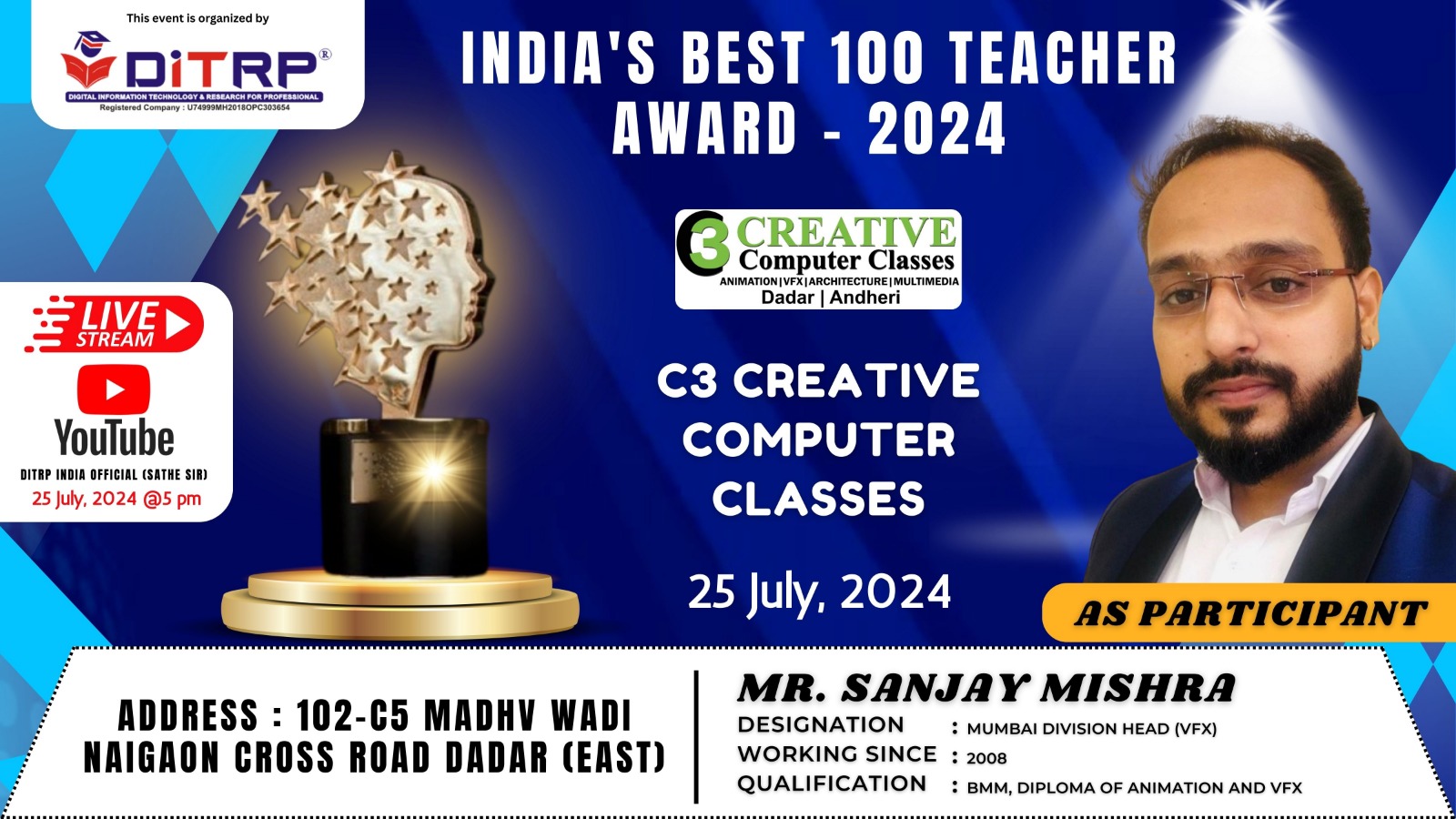 Honoring The Best : C3 Creative Computer Classes, accomplishment of outstanding individuals and terms, demonstration our commitment to quality and excellence . ''From theory to practical , our classes is putting their skills to work, gaining invaluable industry experience. we're thrilled to see our student succeed. #vfx#animation#ideas#creativity#graphics#broadcasting#filmmaking