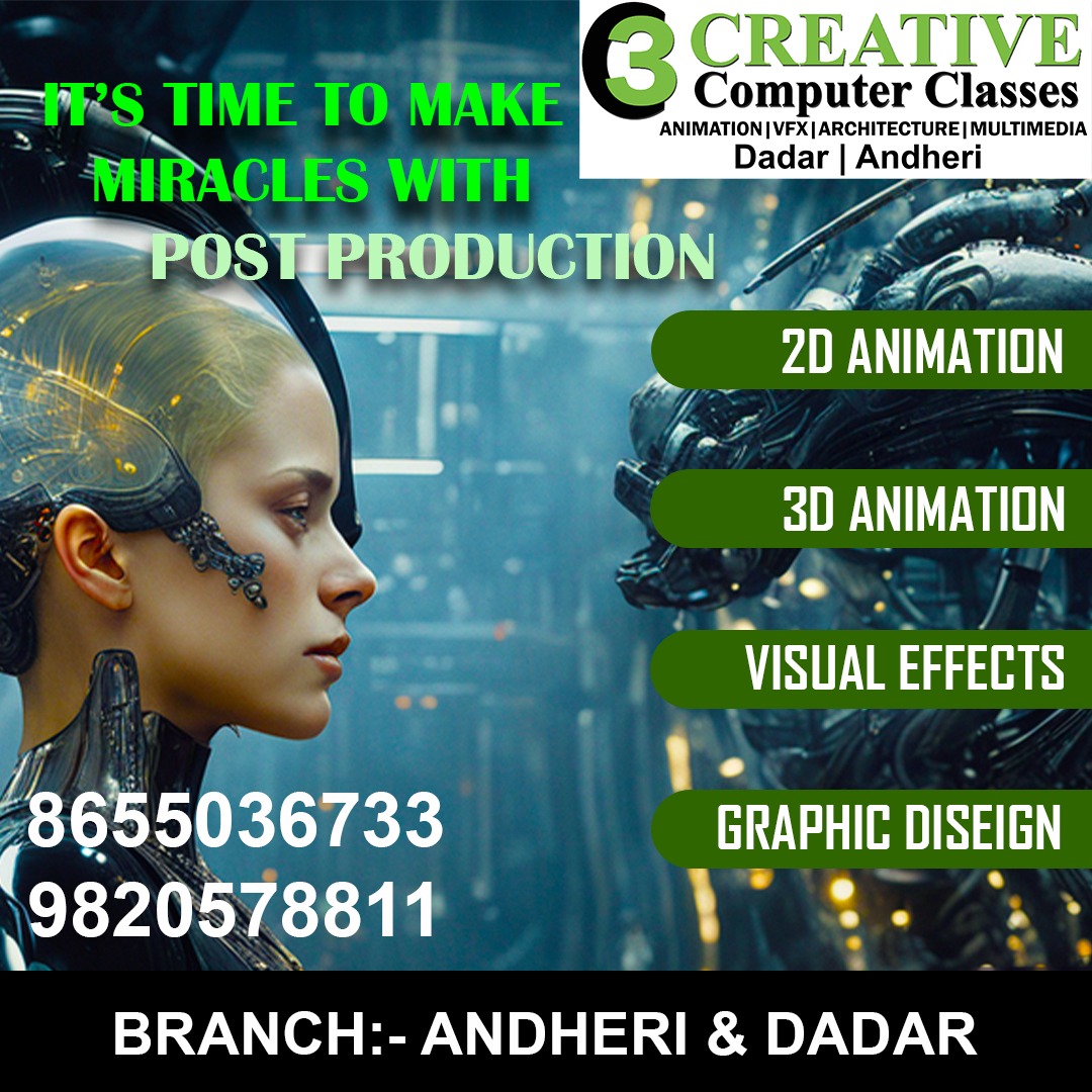 "Join Our Creative Computer Classes! Unlock Your Potential in VFX, Animation, and Graphics! Learn from industry experts and master the latest techniques in: Visual Effects (VFX) Animation (2D & 3D) Graphic Design Digital Art Gain hands-on experience with industry-standard software like: Adobe Creative Suite Autodesk Maya Blender Nuke Develop a professional portfolio and enhance your career prospects in the creative industry. Whether you're a beginner or a seasoned pro, our classes are designed to help you grow and succeed. Join us and bring your imagination to life!" #vfx #graphisDesign #Animation #C3 #degitalClasses #inWorldOfAnimation