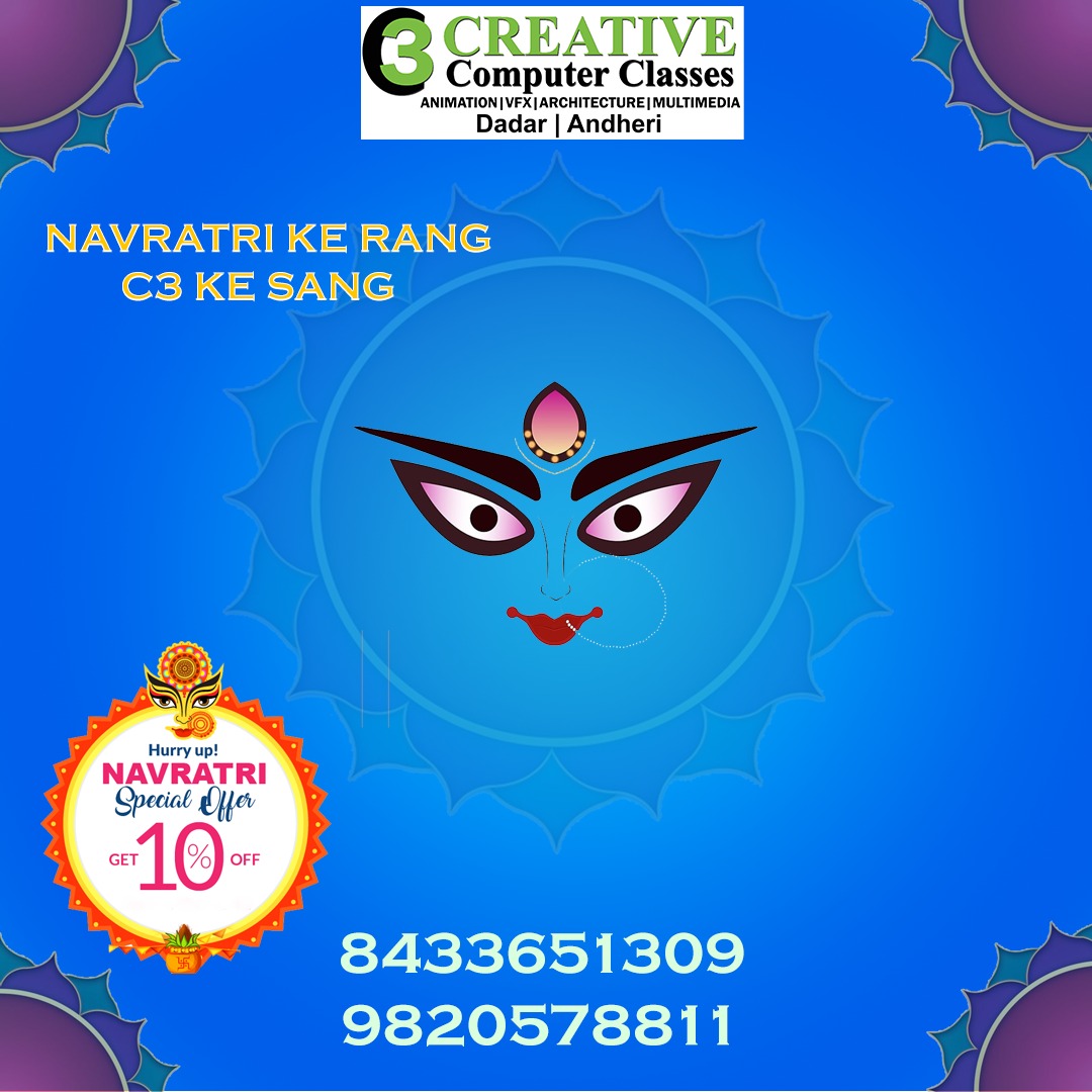 🎉 Navratri Special Offer 🎉 Unlock your creative potential this festive season with 10% OFF on ALL courses at C3 Creative Computer Classes! 🌟💻 Whether you're into Game Design, Animation, VFX, Graphic Design, 3D Architecture & Interior Design, Digital Film Making, Broadcasting Design, Composting & Editing or Specialization Software now is the perfect time to start your journey with us. 🚀 🕒 Hurry, the offer is valid only during Navratri!